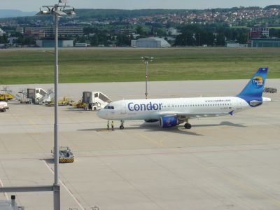 Der blaue Flieger ist das Flugzeug zum 10. Bestehen der Hamburg International.