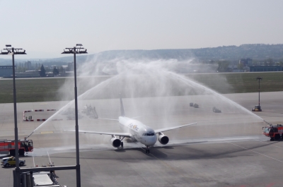 Auf dieser Seite gibt es Bilder vom Erstflug der italienischen Airline Air One die ab 30.3.2014 mit einem Airbus A320 von Catania nach Stuttgart kommt. Wenn ihr auf das Bild klickt gibt es eine grosse Version vom Bild. Wenn ihr noch einen kleinen Film der Wassertaufe sehen wollt, dann geht auf diesen Link HIER